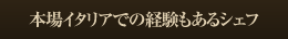 | 宮城県内の農家さん直送の野菜使用。 | イタリアンの料理歴17年以上の森谷シェフが腕を振るいます! 仙台では珍しい曖昧なイタリア料理ではない、本格的なイタリア料理です。 |