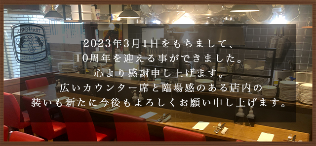 日頃からトラットリアエッセにご来店下さいまして誠にありがとうございます。現在、ご予約のお客様でお席が満席となってしまう時間が多くなってきております。大変ご迷惑をお掛け致しますが、ご来店の際は事前にご予約をして頂くことをおすすめ致します。何卒ご理解ご協力の程よろしくお願い致します。